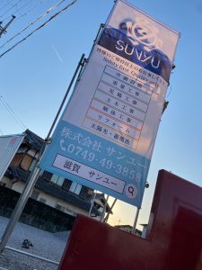 事務所入り口に足場シート設置いたしました!