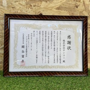 中日本ハイウェイ・メンテナンス名古屋株式会社様より感謝状を頂きました。